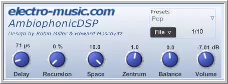 The AmbiophonicDSP VST plugin is the fruition of many years of research by audio engineeing luminary Robin Miller and electro-music.com founder, Howard Moscovitz. The AmbiophonicDSP incorporates several new algorithm developments not found in any other audio device, either hardware or software. This one is the state-of-the-art, the gold standard.