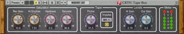 In CRTIV Tape Bus you can choose between 4 distinct tape impulses, 2 flutter noise modes, and several “overload protection” circuitry modes.