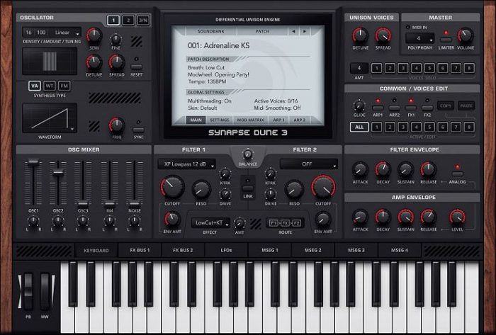 DUNE 3 comes with many new patches crafted by expert sound designers. Since DUNE 3 is fully patch-compatible with DUNE 2, it includes its presets as well,