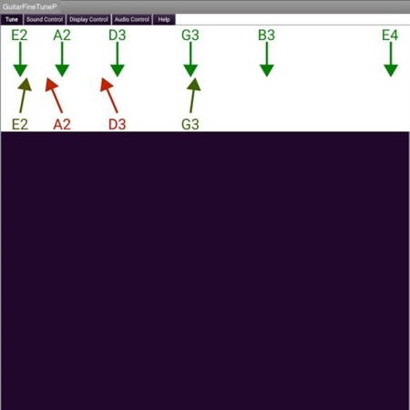 • All strings can be tuned simultaneously. The measured sound for all 6 strings are all shown at the same time, and compared with the sounds for the strings as they must be, when the guitar is in perfect tune.