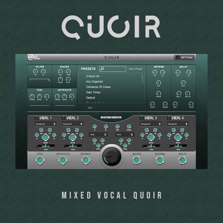 Quoir is a Sampled Vocal Instrument with added Waveform Generator. We recorded and sampled 25 different Vocalists (15 Women & 10 Men). Containing 4 total Sampler Engines, you can blend 4 different Vocals at a time. By blending these 4 Vocals together, we bring you some Unique Choir Combinations! Slap on the Waveform Generator for some added artifacts and you have some crazy choirs & textures!