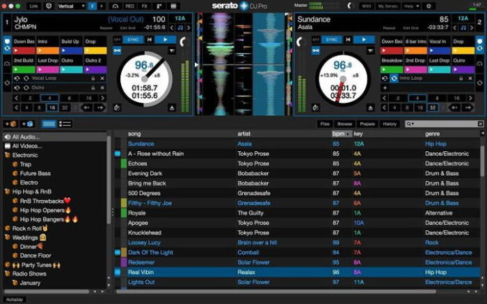 When it comes to managing your music, you couldn’t ask for a better copilot than Serato DJ Pro. Organize your music into crates for different gigs, complete with album art. You’ll get full access to your iTunes library and whitelabel.net files right off the bat too. You can even set up keywords, such as genre or BPM, to sort your music into smart crates that auto update, or toss new files into the Prepare Crate for further review. Serato DJ Pro can even call up a history of what you played in recent gigs, which is a real bonus if you need to turn in lists for royalty tracking.
