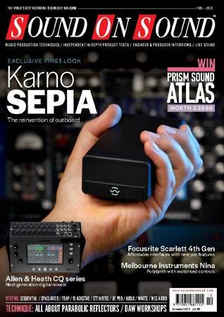 Karno SEPIA Preview [front cover] • Spotlight: All-in-one Podcasting Devices • Focusrite Scarlett 4th Gen interface • Allen & Heath CQ-18T digital mixer • Sequential Trigon-6 synth • Frap Audio Dynamics 2806 • Steinberg SpectraLayers Pro 10 • Synclavier Regen • Melbourne Instruments Nina • Audix PDX720 Signature Edition mic • Embody IVS Gavin Lursson Signature Edition • Polyend Tracker Mini • AJH Synth/Tone Science Triple Cross • Wes Audio ng76 FET compressor • Blackstar St James Plugin • Ultimate Ears UE PREMIER in-ears • Sample Libraries — and lots more!