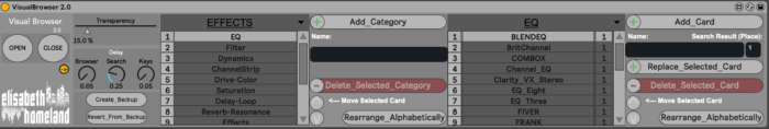 Visual Browser v2.2 Max for live device AMDX AMDX | 7.52 MB Visual Browser is a MaxForLive device that makes it easy to find and load Devices, plugins, Track presets, …