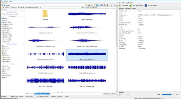 Audio File Browser v1.0.15.55 WiN P2P | 04 September 2022 | 19 MB Audio File Browser is a utility for browsing audio files with waveform thumbnails preview. Features: •Browse audio …